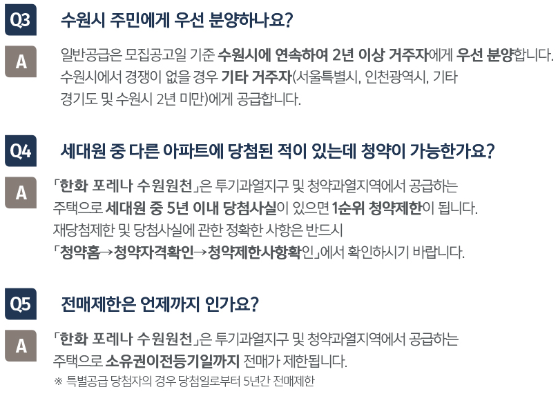 한화포레나 수원원천 재당첨제한 : 5년간 제한