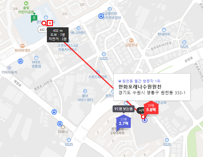 한화포레나 수원원천 공급 위치 : 경기 수원시 영통구 원천동 333-1번지
