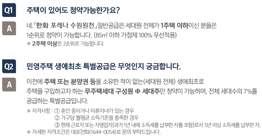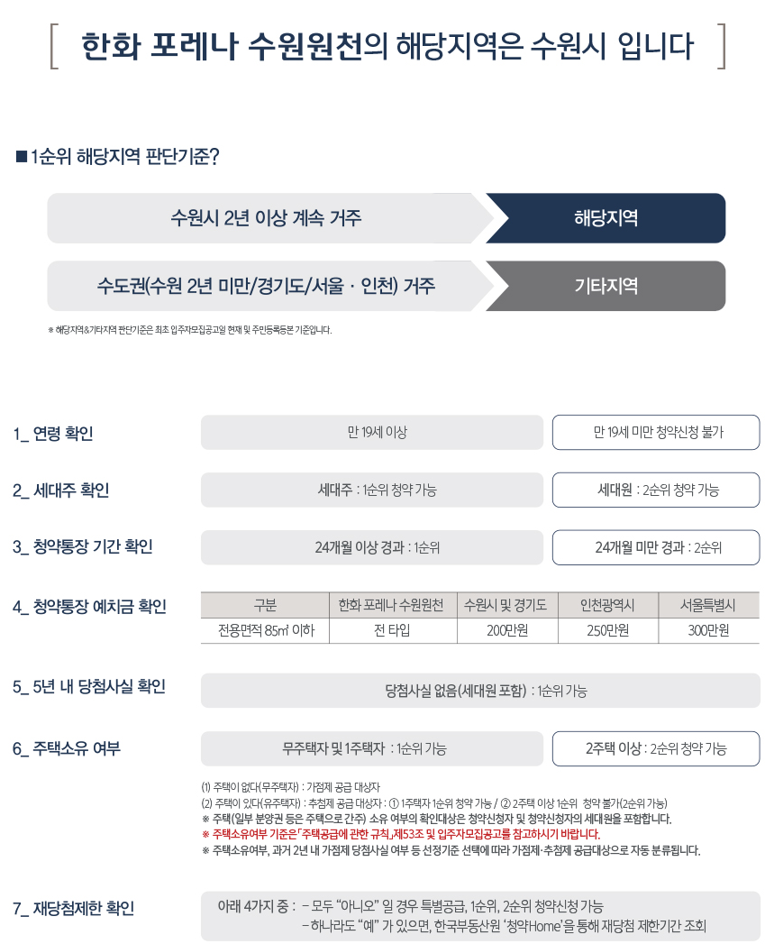 한화포레나 수원원천 1순위 청약 자격 : 수원시,서울,경기,인천에 거주하는 세대주