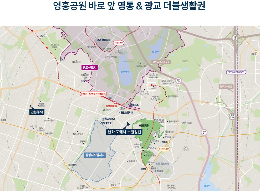 삼성디지털시티, 광교 행정・법조타운 등 인근 핵심 업무지구와의 뛰어난 직주근접