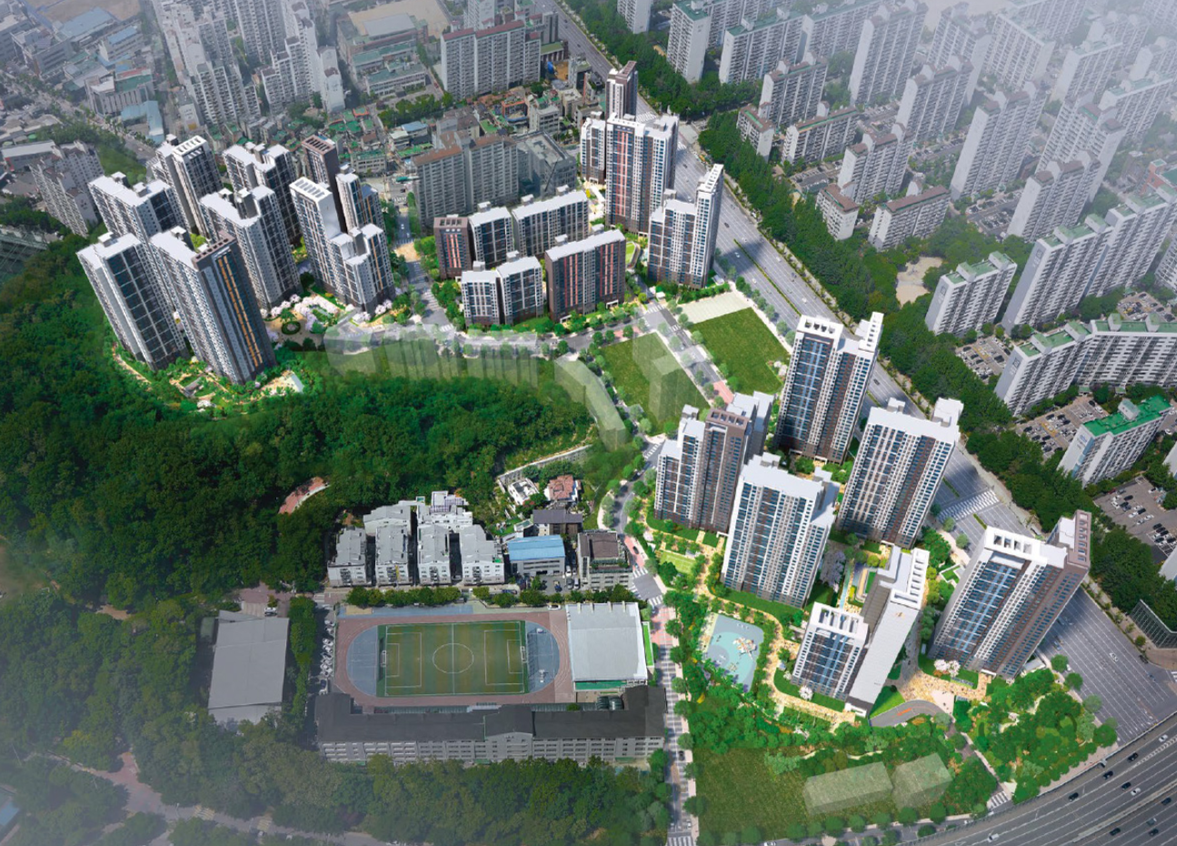 현대건설이 주가 되는 컨소시엄 재개발 아파트로 총 3개 단지 2417세대의 대형 아파트다. 주택재개발 사업에 의한 대규모 단지인만큼 주변 신축단지는 전무하며, GTX와 연관된 교통호재까지 감안하면 상당한 경쟁률이 예상된다.